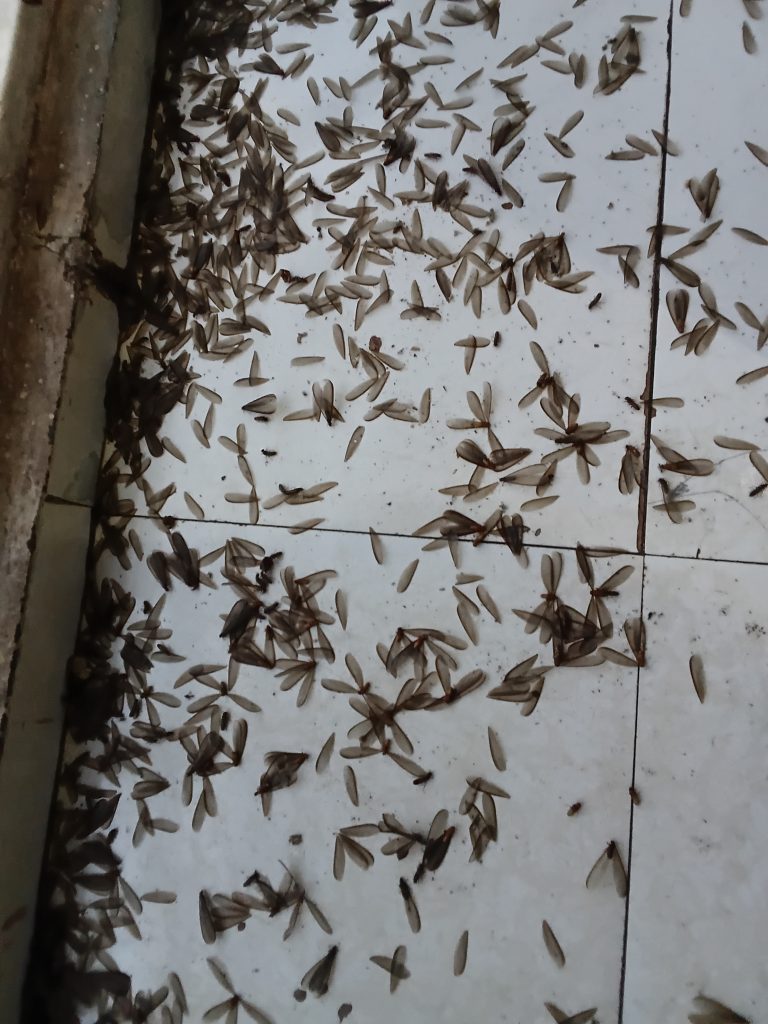 Dans la nuit du samedi 21 au dimanche 22 février 2026, une fine pluie tombée sur une grande partie de la ville de Bukavu a été accompagnée d’un phénomène aussi impressionnant que familier : un essaimage massif de termites ailés, communément appelés fourmis blanches. Au quartier Nyalukemba, particulièrement sur l’avenue du Lac, de nombreuses habitations ont été envahies par ces insectes attirés par les ampoules restées allumées. Sous la lumière artificielle, des nuées d’insectes ont virevolté durant plusieurs heures, transformant les façades et les salons en véritables scènes de vie nocturne.