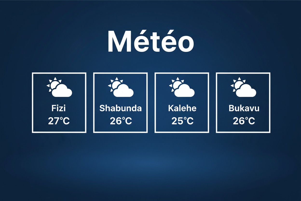 Dans la ville de Bukavu ainsi qu’en territoire de Kabare, le ciel sera partiellement nuageux avec quelques éclaircies au cours de la journée. Les températures évolueront entre 23 et 26°C, avec un vent léger rendant l’atmosphère relativement agréable. Toutefois, des averses isolées pourraient survenir en fin d’après-midi, comme cela est fréquent en cette période. (Essentiel RDC)