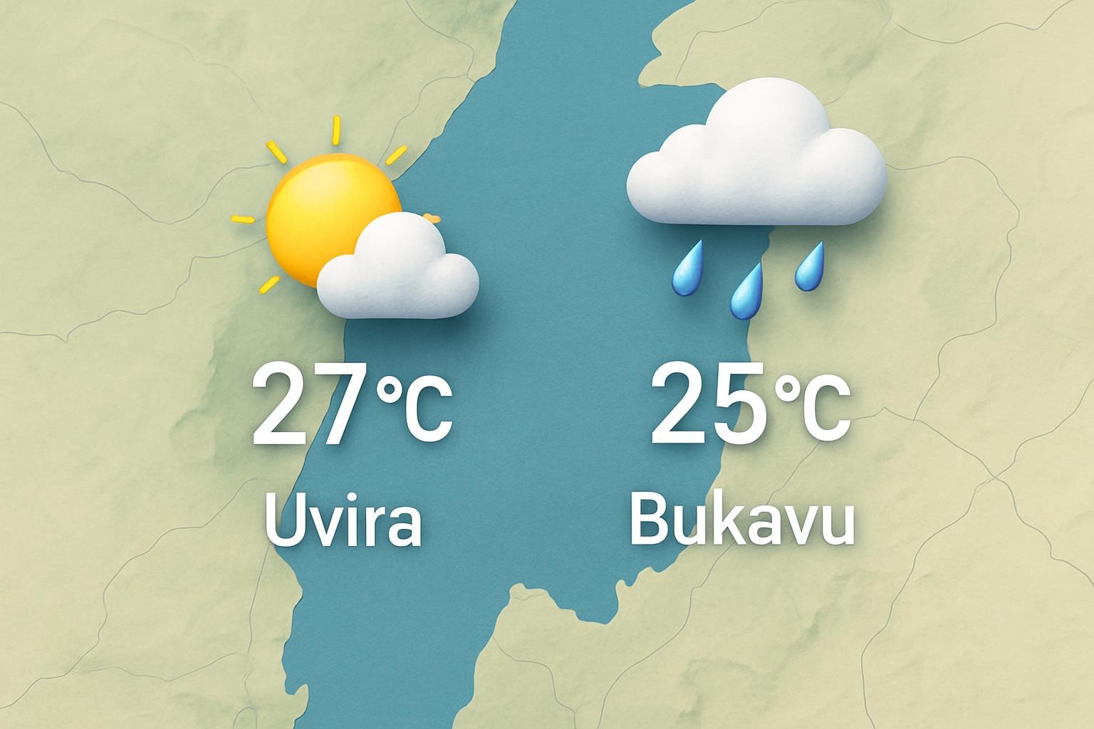 par Eugide Abalawi-Ndabelnze décembre 18, 2025 0 2 minutes 3 moisMétéo : 27°C à Uvira, 25°C à Bukavu avec des précipitations possibles